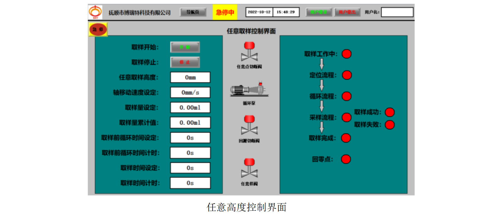 ◆如需中途停止取樣工作,可按“急停”按鈕,此時(shí)停止取樣工作。